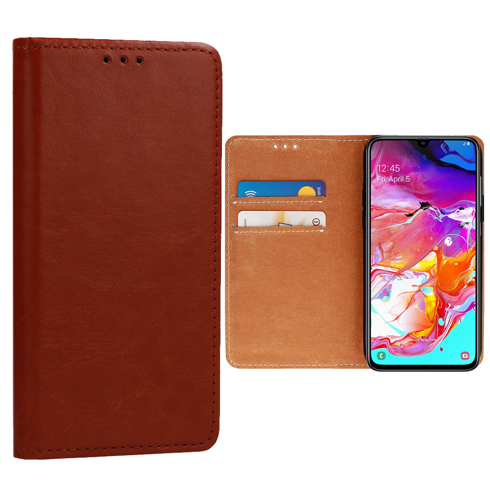 ΘΗΚΗ SAMSUNG A70 A705 6.7" ITALIAN LEATHER MAGNET BOOK STAND BROWN