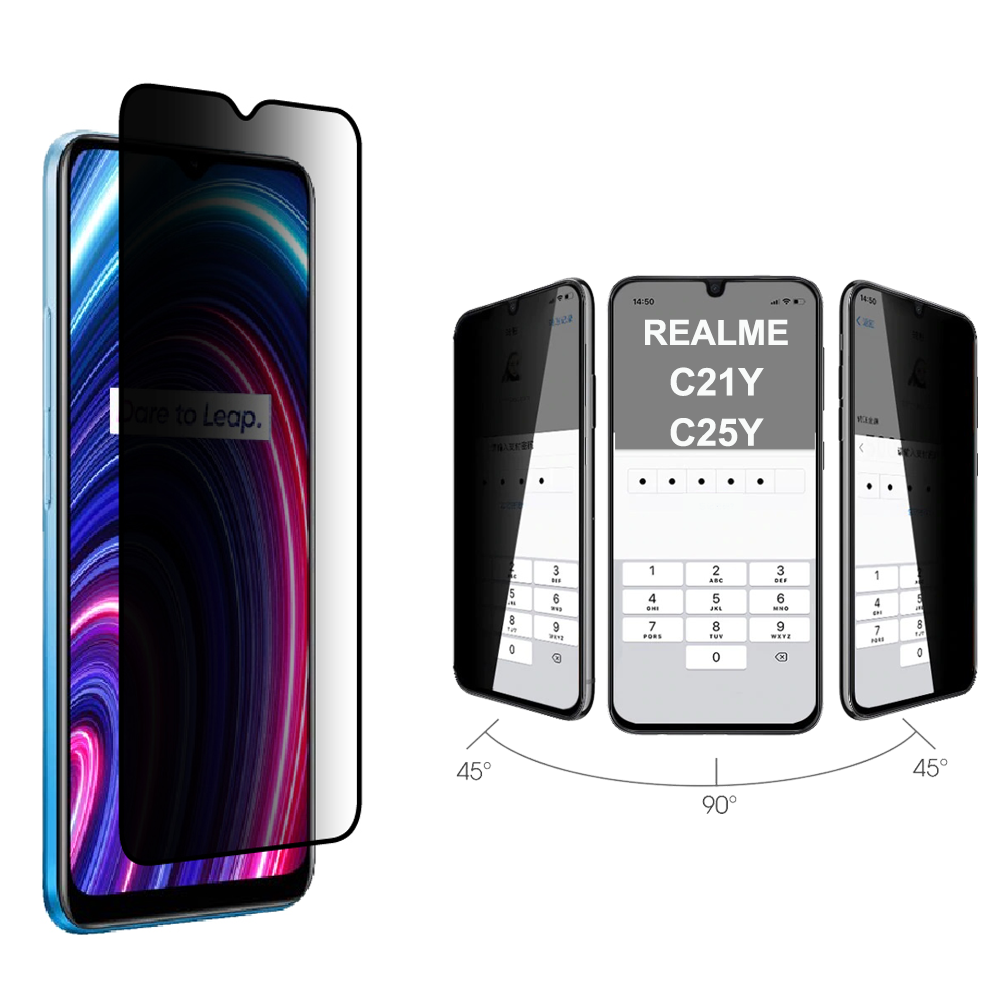 PREMIUM TEMPERED GLASS REALME C21Y / REALME C25Y 6.5" 9H 0.30mm FULL FACE FULL GLUE PRIVACY ANTISPY GLASS BLACK