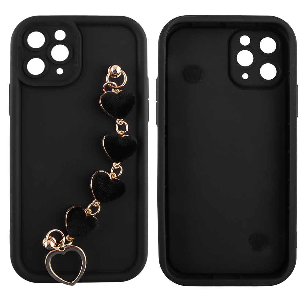 VOLTE-TEL ΘΗΚΗ IPHONE 11 PRO 5.8" SILICON TPU WITH STRAP FULL CAMERA PROTECTION BLACK WITH BLACK HEARTS