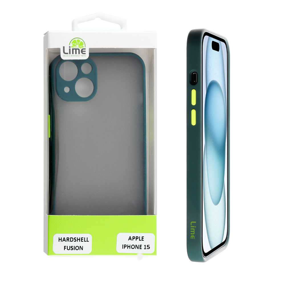 LIME ΘΗΚΗ IPHONE 15 6.1" HARDSHELL FUSION FULL CAMERA PROTECTION GREEN WITH YELLOW KEYS