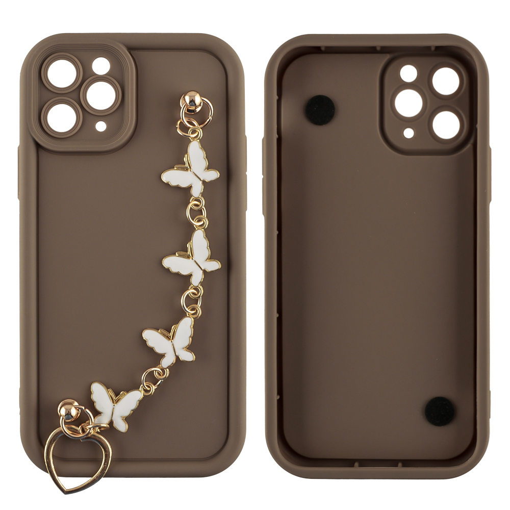 VOLTE-TEL ΘΗΚΗ IPHONE 11 PRO 5.8" SILICON TPU WITH STRAP FULL CAMERA PROTECTION BROWN WITH WHITE BUTTERFLIES