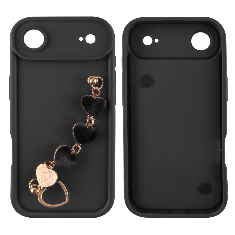 VOLTE-TEL ΘΗΚΗ IPHONE 17 AIR 6.5" SILICON TPU WITH STRAP FULL CAMERA PROTECTION BLACK WITH BLACK HEARTS