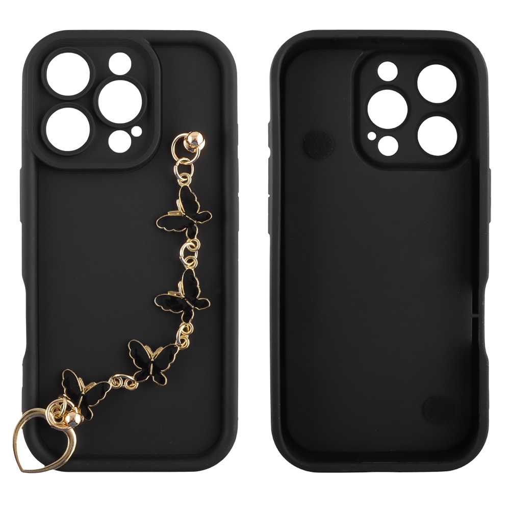 VOLTE-TEL ΘΗΚΗ IPHONE 16 PRO 6.3" SILICON TPU WITH STRAP FULL CAMERA PROTECTION BLACK WITH BLACK BUTTERFLIES
