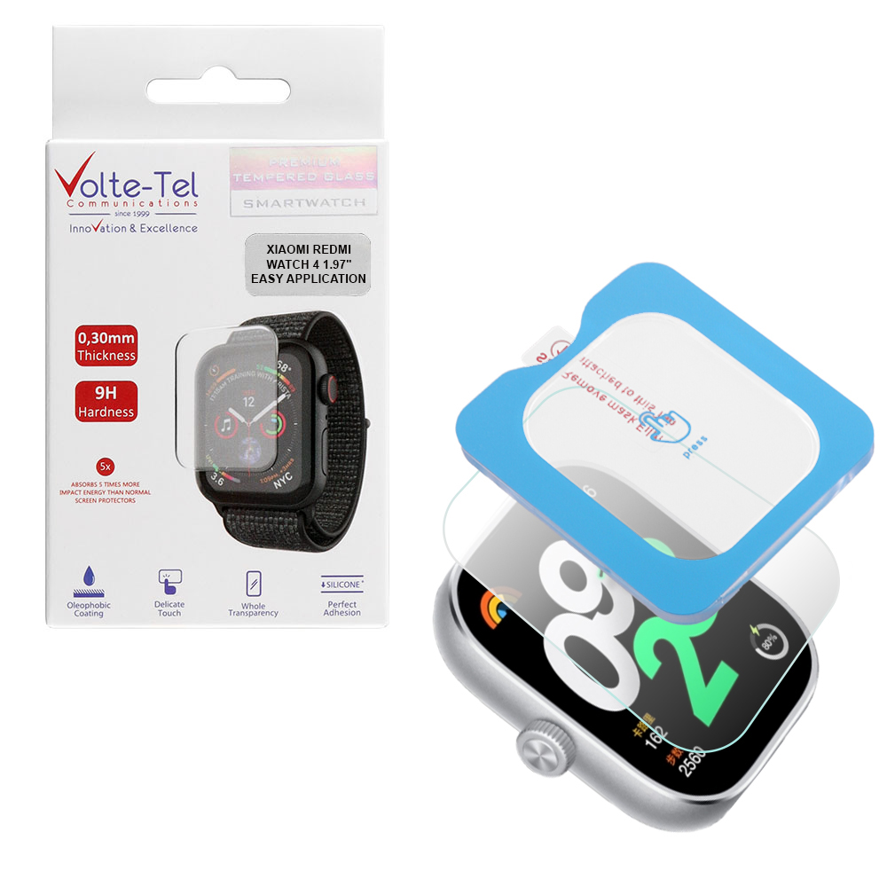 TEMPERED GLASS XIAOMI REDMI WATCH 4 1.97" 9H 0.30mm 2.5D EASY APPLICATION FULL GLUE FULL COVER TRANSPARENT