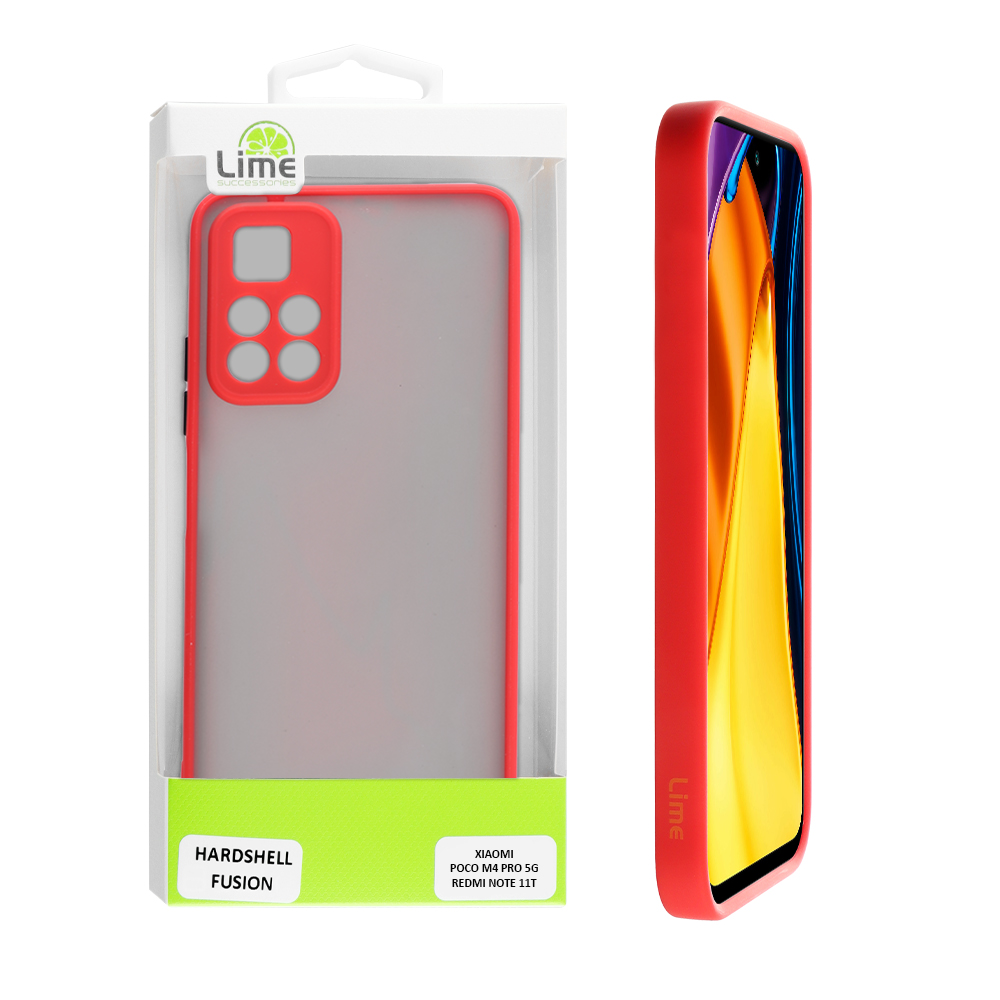 LIME ΘΗΚΗ XIAOMI POCO M4 PRO 5G / REDMI NOTE 11T 5G 6.6" HARDSHELL FUSION CAMERA GUARD RED WITH BLACK KEYS