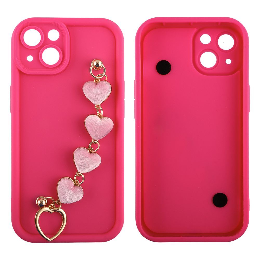 VOLTE-TEL ΘΗΚΗ IPHONE 13 6.1" SILICON TPU WITH STRAP FULL CAMERA PROTECTION PINK WITH PINK HEARTS