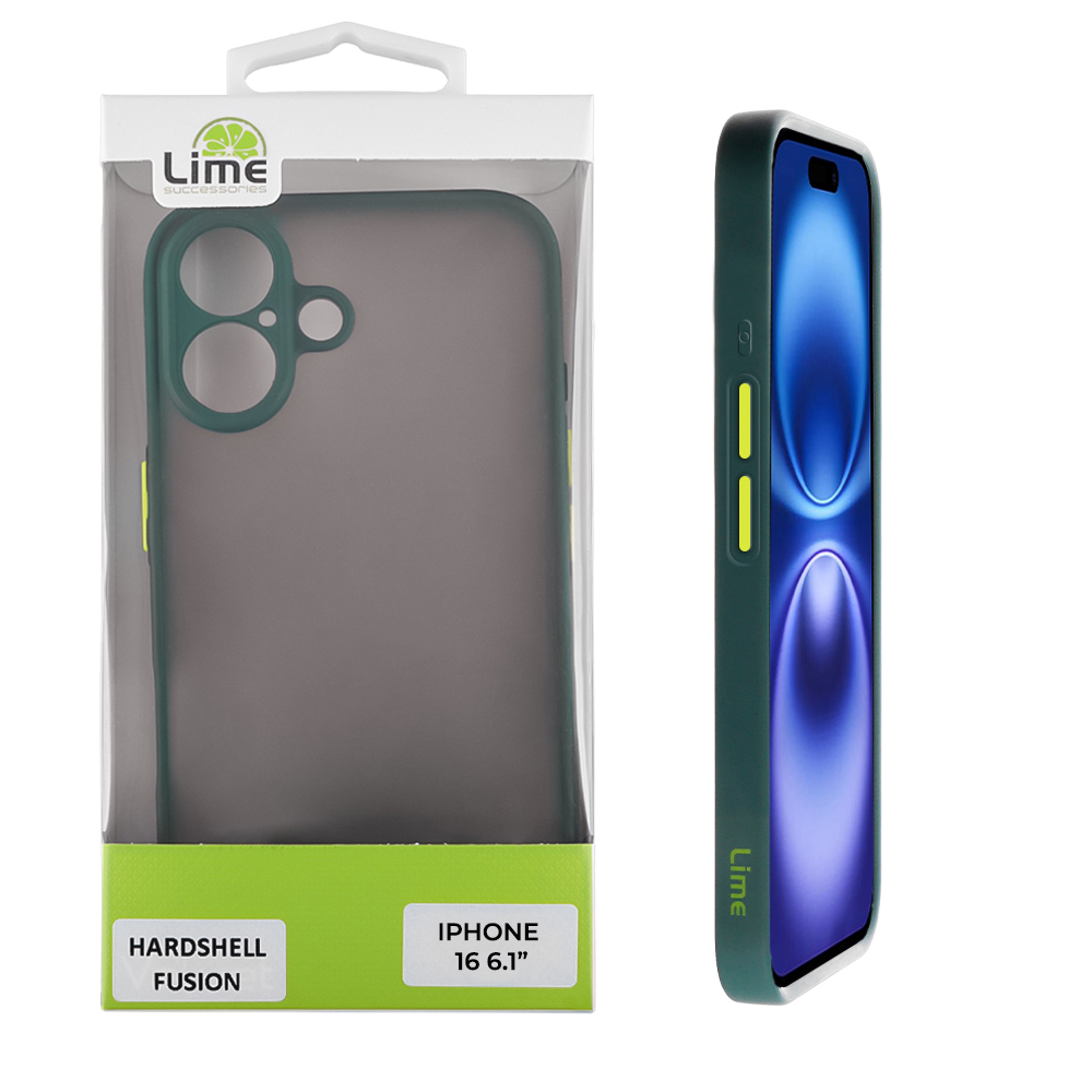 LIME ΘΗΚΗ IPHONE 16 6.3" HARDSHELL FUSION FULL CAMERA PROTECTION GREEN WITH YELLOW KEYS
