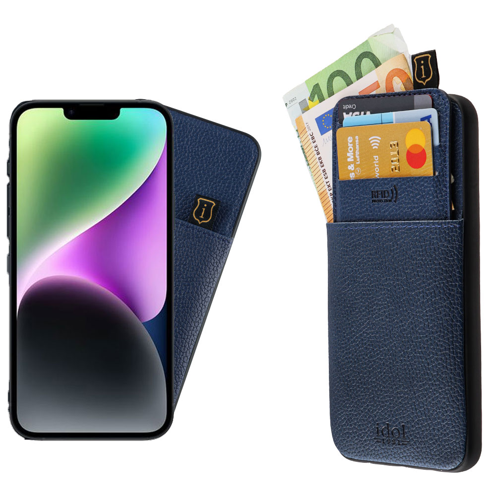 ΘΗΚΗ IPHONE 14 PLUS 6.7" ANTI-RFID LEATHER SMART WALLET CAMERA GUARD BLUE