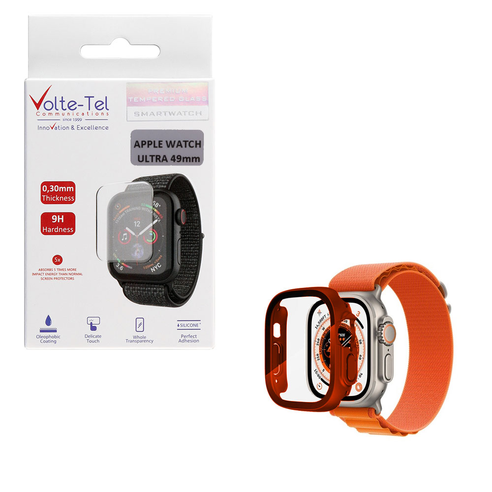 TEMPERED GLASS APPLE WATCH ULTRA / ULTRA 2 49mm 1.92" 9H 0.30mm PC EDGE COVER WITH KEY 3D FULL GLUE FULL COVER ORANGE