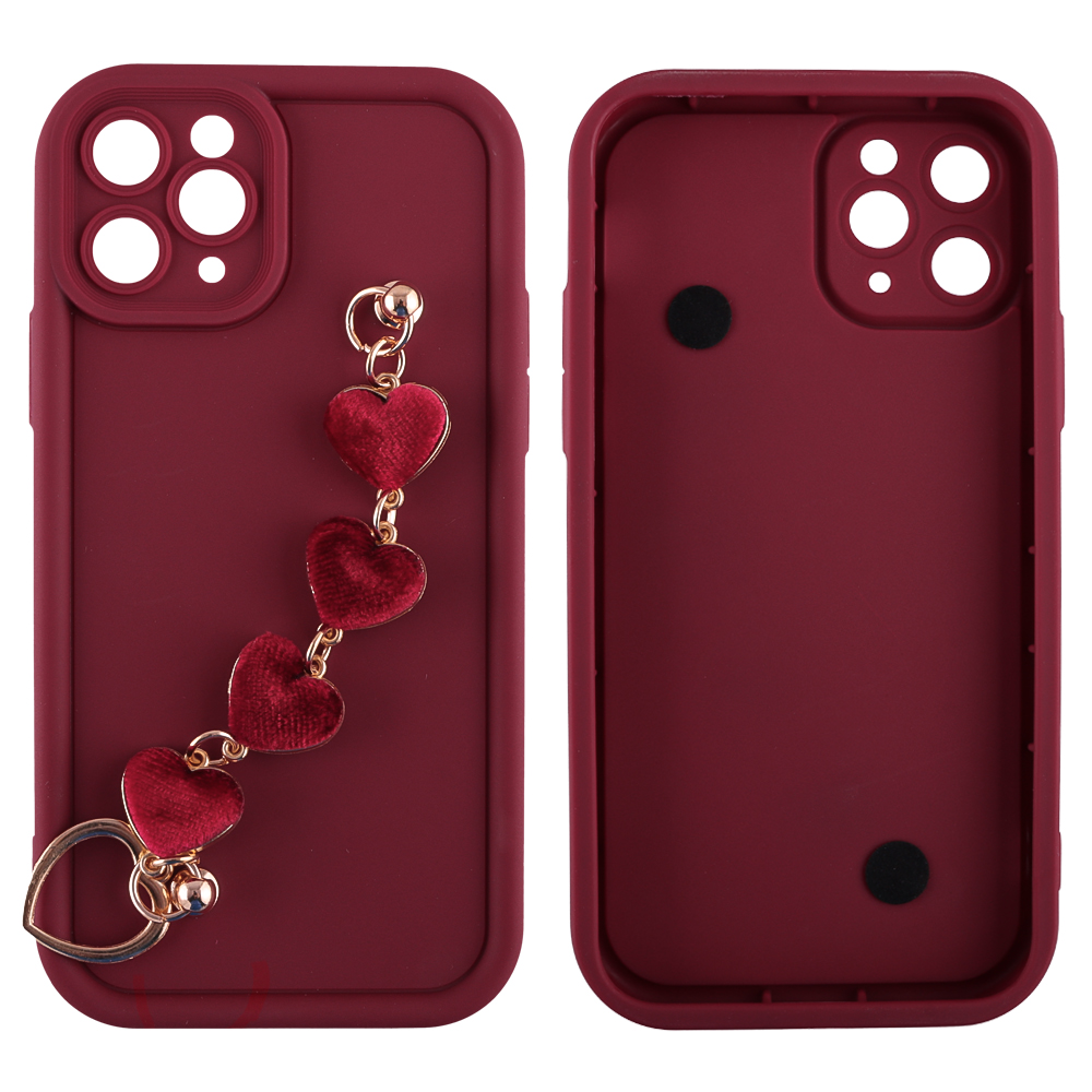 VOLTE-TEL ΘΗΚΗ IPHONE 11 PRO 5.8" SILICON TPU WITH STRAP FULL CAMERA PROTECTION BURGUNDY WITH RED HEARTS