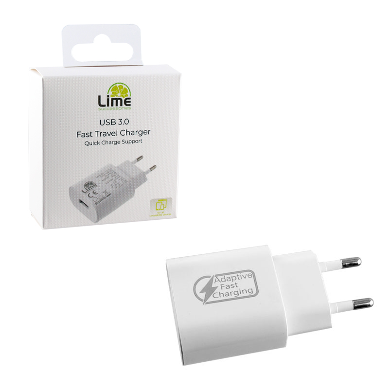 Τώρα μπορείτε να φορτίσετε το κινητό σας γρηγορότερα με το νέο φορτιστή FAST TRAVEL CHARGER QC 3.0 LTU01 2400mA από την LIME SUCCESSORIES. Ο νέος αυτός φορτιστής χρησιμοποιεί την τεχνολογία Quick Charge 3.0 και προσφέρει 4 φορές μεγαλύτερη ταχύτητα φόρτισης, σε σύγκριση με τους συμβατικούς ταχυφορτιστές. Χάρη σε αυτόν θα είστε σε θέση να φορτίσετε ταχύτατα την μπαταρία του αγαπημένο σας Smartphone από το 0% σε 80% σε μόλις 45 λεπτά, ενώ είναι παράλληλα συμβατός και με τις τεχνολογίες Quick Charge 2.0/Quick Charge/Adaptive Fast Charging (Samsung)/SuperCharge (Huawei) και φυσικά Fast Charging για το 80% των μοντέλων της αγοράς. Επιπλέον διαθέτει εξελιγμένο κύκλωμα με πολλαπλά επίπεδα ασφάλειας για να μπορείτε να φορτίζετε χωρίς να έχετε άγχος για την ασφάλεια των συσκευών σας. Τέλος αξίζει να σημειωθεί ότι μπορείτε να τον χρησιμοποιήσετε και ως έναν συμβατικό φορτιστή για να φορτίζετε το αγαπημένο σας Smartphone ή Tablet.