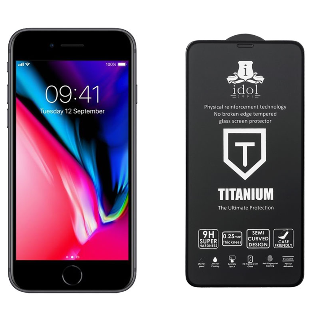 TEMPERED GLASS IPHONE SE 2020 / IPHONE 8 / IPHONE 7 4.7" 9H 0.25mm TITANIUM SEMI CURVED FULL GLUE BLACK