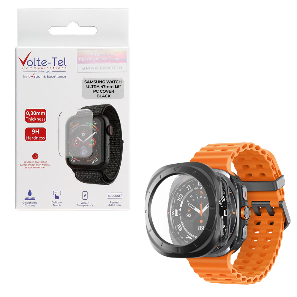 TEMPERED GLASS SAMSUNG WATCH ULTRA 47mm 1.5" 9H 0.30mm PC EDGE COVER WITH KEY 3D FULL GLUE FULL COVER BLACK