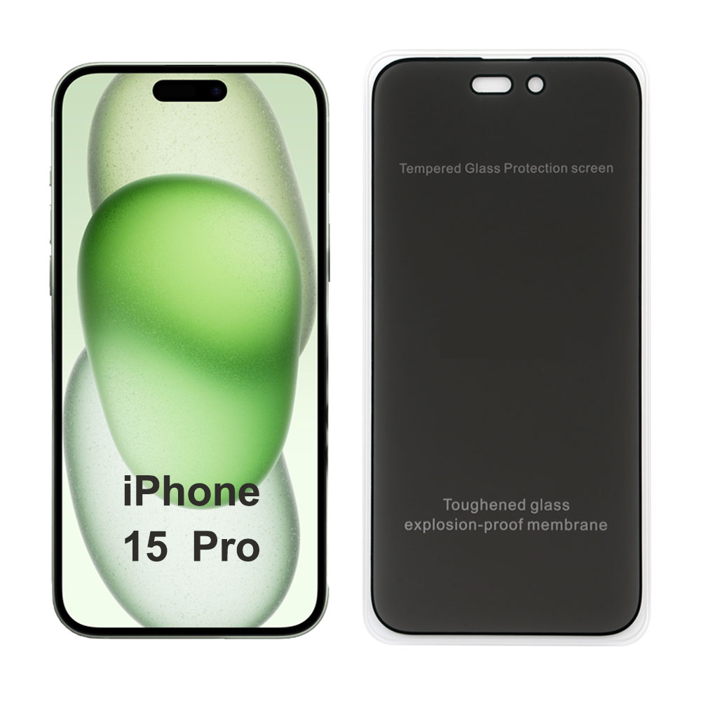 TEMPERED GLASS IPHONE 15 PRO 6.1" 9H 0.30mm PREMIUM PRIVACY ANTISPY SEMI CURVED FULL GLUE BLACK