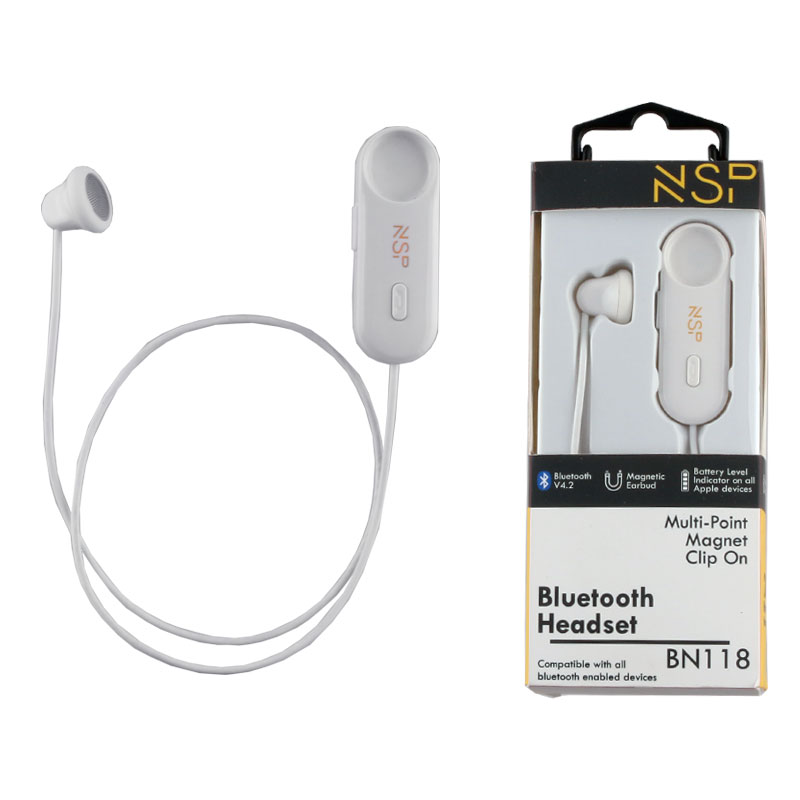 NSP BLUETOOTH BN118 MAGNET CLIP ON HEADSET V4.2 (2 ΣΥΣΚΕΥΩΝ) WHITE