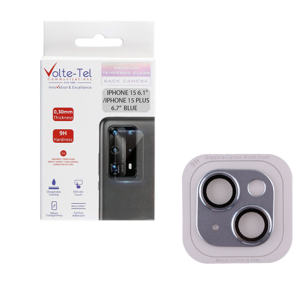 CAMERA GLASS COVER IPHONE 15 6.1" / IPHONE 15 PLUS 6.7" 9H 0.30MM 3D AR ALUMINIUM-ELECTROPLATING FRAME BLUE