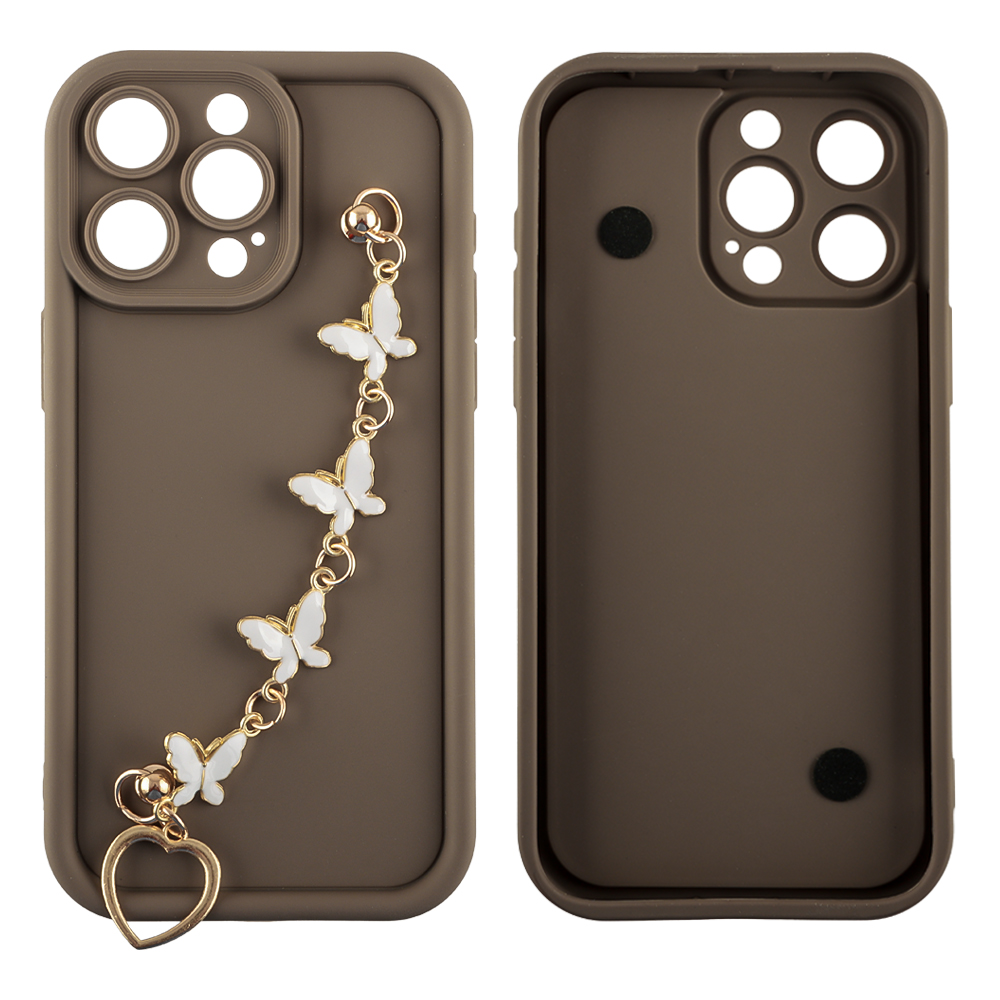 VOLTE-TEL ΘΗΚΗ IPHONE 15 PRO MAX 6.7" SILICON TPU WITH STRAP FULL CAMERA PROTECTION BROWN WITH WHITE BUTTERFLIES