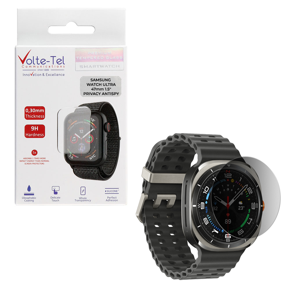 TEMPERED GLASS SAMSUNG WATCH ULTRA 47mm 1.5" 9H 0.30mm PRIVACY ANTISPY FULL GLUE BLACK