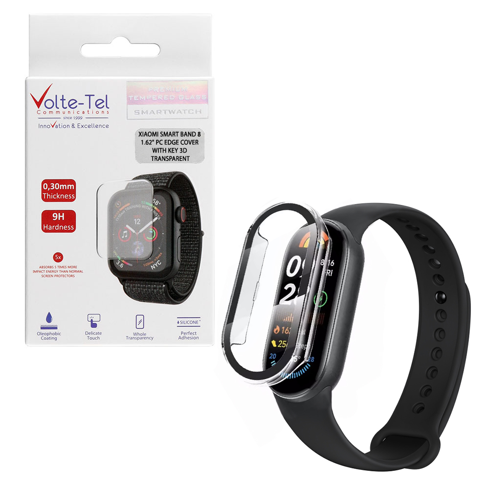 VOLTE-TEL TEMPERED GLASS XIAOMI SMART BAND 8 1.62" 9H 0.30mm PC EDGE COVER WITH KEY 3D FULL GLUE FULL COVER TRANSPARENT