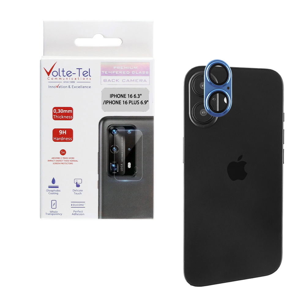 VOLTE-TEL CAMERA GLASS COVER IPHONE 16 6.3" / IPHONE 16 PLUS 6.9" 9H 0.30MM 3D AR ALUMINIUM-ELECTROPLATING FRAME BLUE