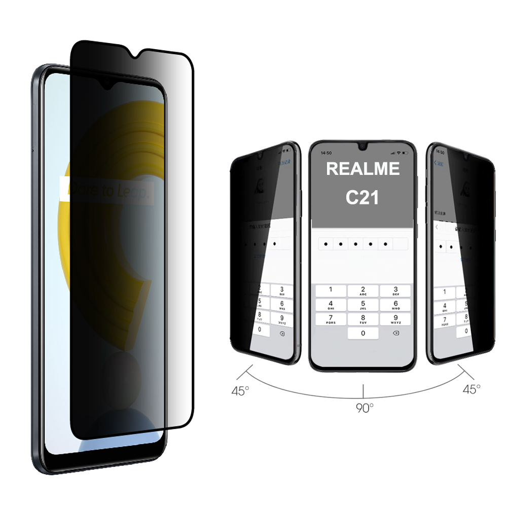 PREMIUM TEMPERED GLASS REALME C21 6.5" 9H 0.30mm FULL FACE FULL GLUE PRIVACY ANTISPY GLASS BLACK