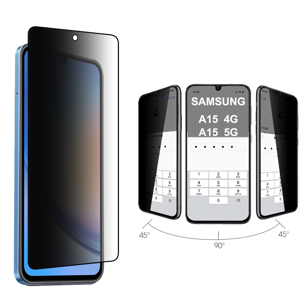 PREMIUM TEMPERED GLASS SAMSUNG A15 4G A155 / A15 5G A157 6.4" 9H 0.30mm FULL FACE FULL GLUE PRIVACY ANTISPY GLASS BLACK