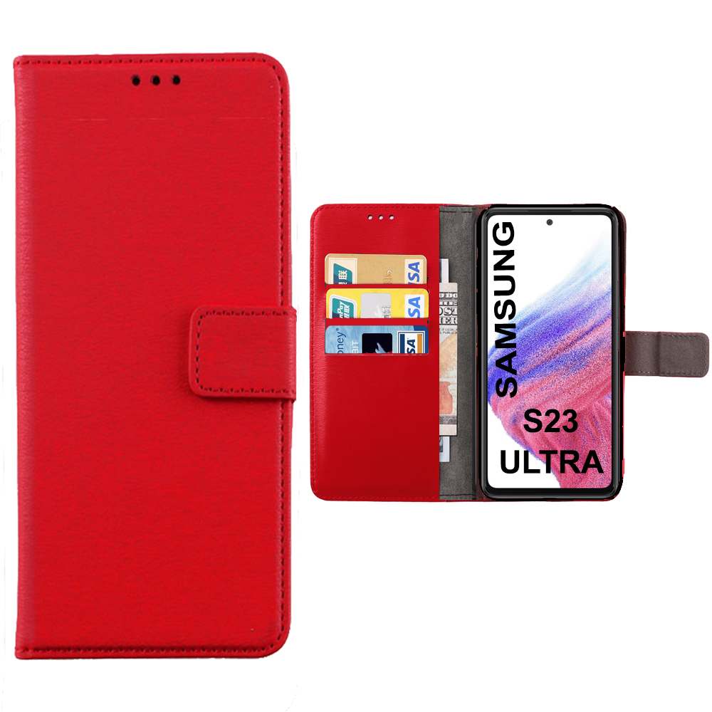 ΘΗΚΗ SAMSUNG S23 ULTRA 5G S918 6.8" ΠΟΡΤΟΦΟΛΙ ΔΕΡΜΑΤΙΝΗΣ ME ΜΑΓΝΗΤΙΚΟ CLIP RED
