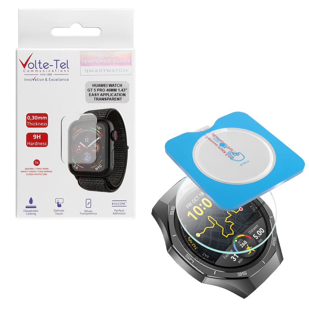 VOLTE-TEL TEMPERED GLASS HUAWEI WATCH GT 5 PRO 46MM 1.43" 9H 0.30mm 2.5D EASY APPLICATION FULL GLUE FULL COVER TRANSPARENT