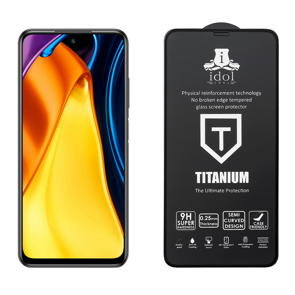 TEMPERED GLASS XIAOMI POCO M3 PRO 4G / M3 PRO 5G 6.5" 9H 0.25mm TITANIUM SEMI CURVED FULL GLUE BLACK