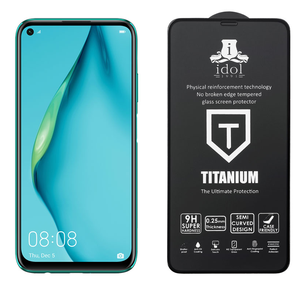 TEMPERED GLASS HUAWEI P40 LITE 6.4" 9H 0.25mm TITANIUM SEMI CURVED FULL GLUE BLACK