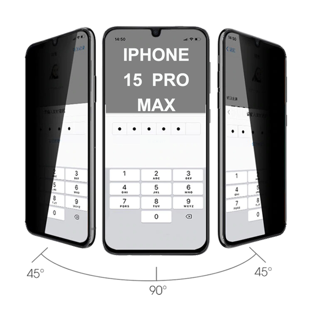 PRIVACY ANTISPY TEMPERED GLASS IPHONE 15 PRO MAX 6.7" 9H 0.30mm FULL FACE FULL GLUE BLACK