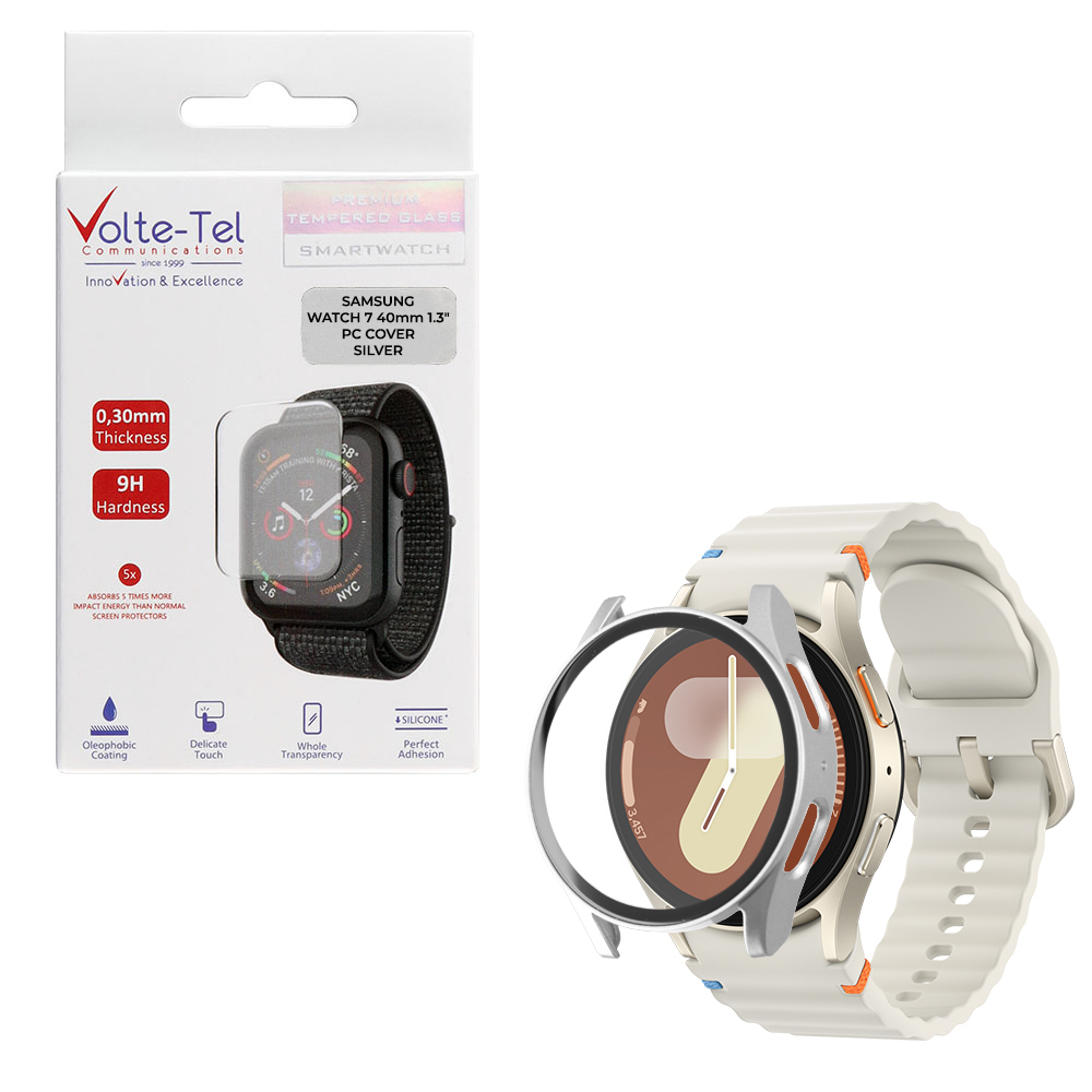 TEMPERED GLASS SAMSUNG WATCH 7 40mm 1.3" 9H 0.30mm PC EDGE COVER WITH KEY 3D FULL GLUE FULL COVER SILVER