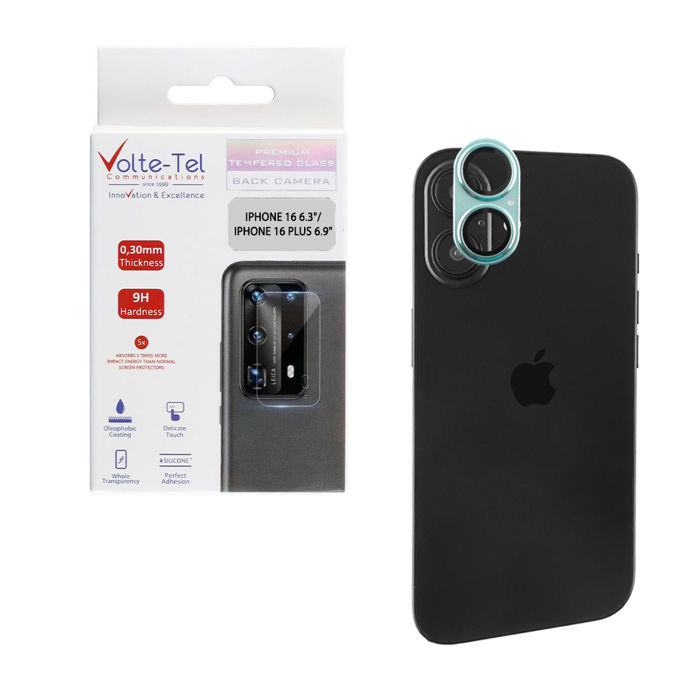 VOLTE-TEL CAMERA GLASS COVER IPHONE 16 6.3" / IPHONE 16 PLUS 6.9" 9H 0.30MM 3D AR ALUMINIUM-ELECTROPLATING FRAME GREEN