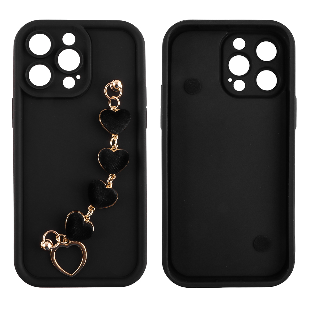 VOLTE-TEL ΘΗΚΗ IPHONE 14 PRO 6.1" SILICON TPU WITH STRAP FULL CAMERA PROTECTION BLACK WITH BLACK HEARTS