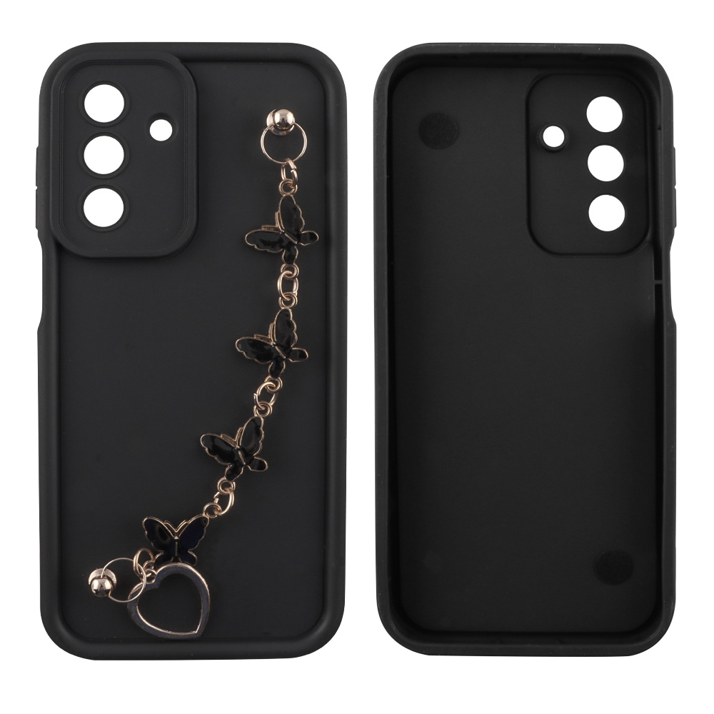 VOLTE-TEL ΘΗΚΗ SAMSUNG A17 4G A175 / A17 5G A176 6.74" SILICON TPU WITH STRAP FULL CAMERA PROTECTION BLACK WITH BLACK BUTTERFLIES