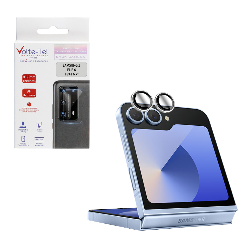VOLTE-TEL CAMERA GLASS COVER SAMSUNG Z FILP 6 F741 5G 6.7" 9H 0.30MM EASY APPLICATION SILVER