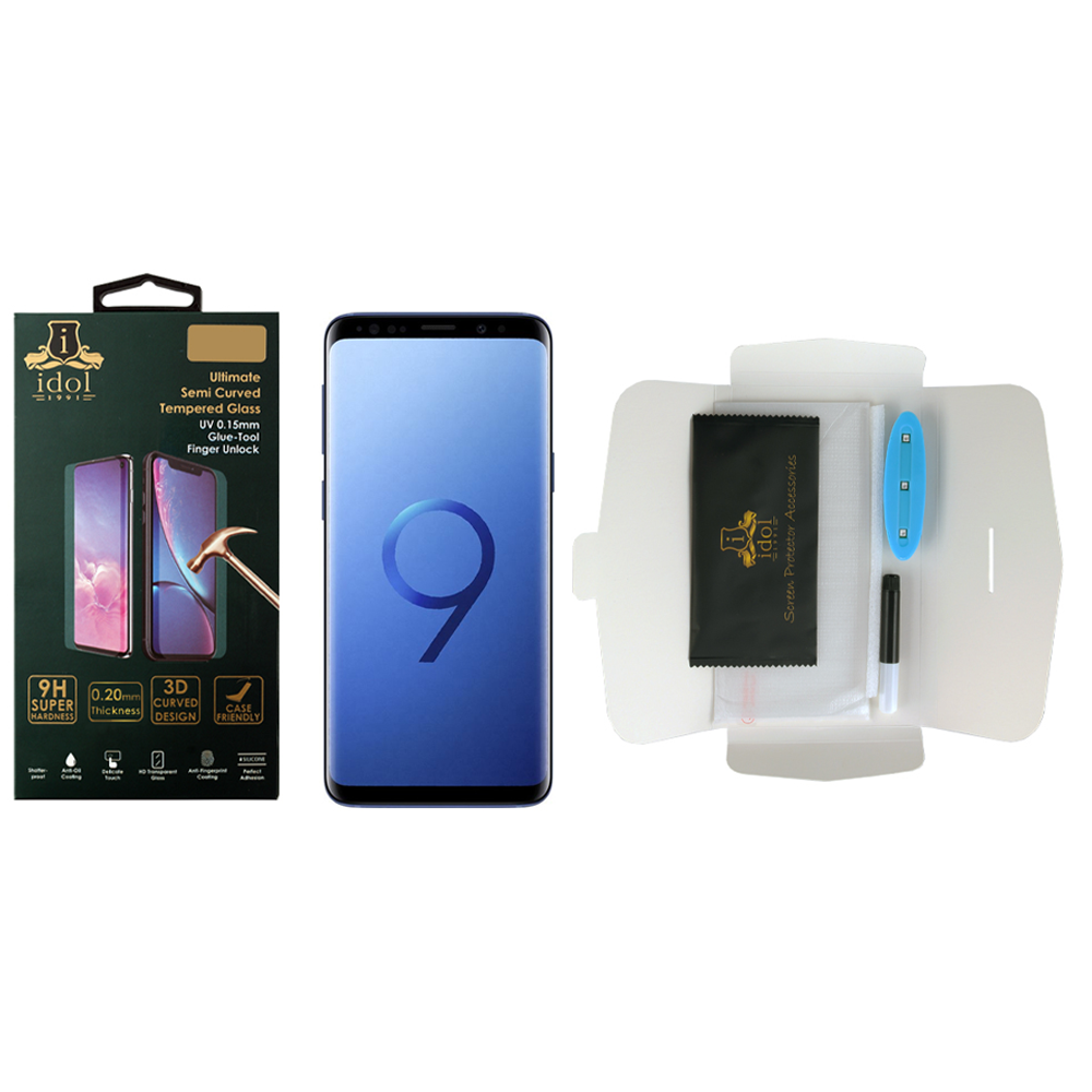 TEMPERED UV GLASS SAMSUNG S9 G960 5.8" 9H 0.20mm 10D SEMI WITH GLUE-TOOL FINGER UNLOCK FULL COVER TRANSPARENT
