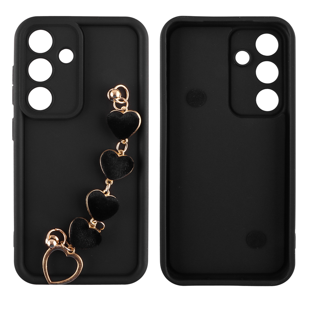 VOLTE-TEL ΘΗΚΗ SAMSUNG S25 5G S931 6.2" SILICON TPU WITH STRAP FULL CAMERA PROTECTION BLACK WITH BLACK HEARTS
