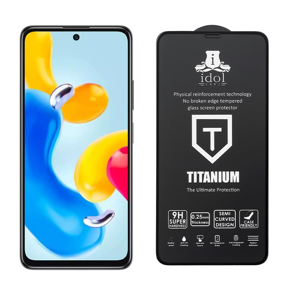 TEMPERED GLASS XIAOMI REDMI NOTE 11S 5G 6.6" 9H 0.25mm TITANIUM SEMI CURVED FULL GLUE BLACK