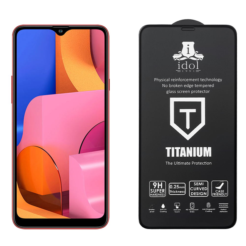 TEMPERED GLASS SAMSUNG A20s A207 6.5" 9H 0.25mm TITANIUM SEMI CURVED FULL GLUE BLACK