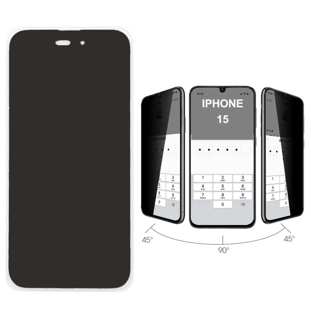 PREMIUM TEMPERED GLASS IPHONE 15 6.1" 9H 0.30mm FULL FACE FULL GLUE PRIVACY ANTISPY GLASS BLACK