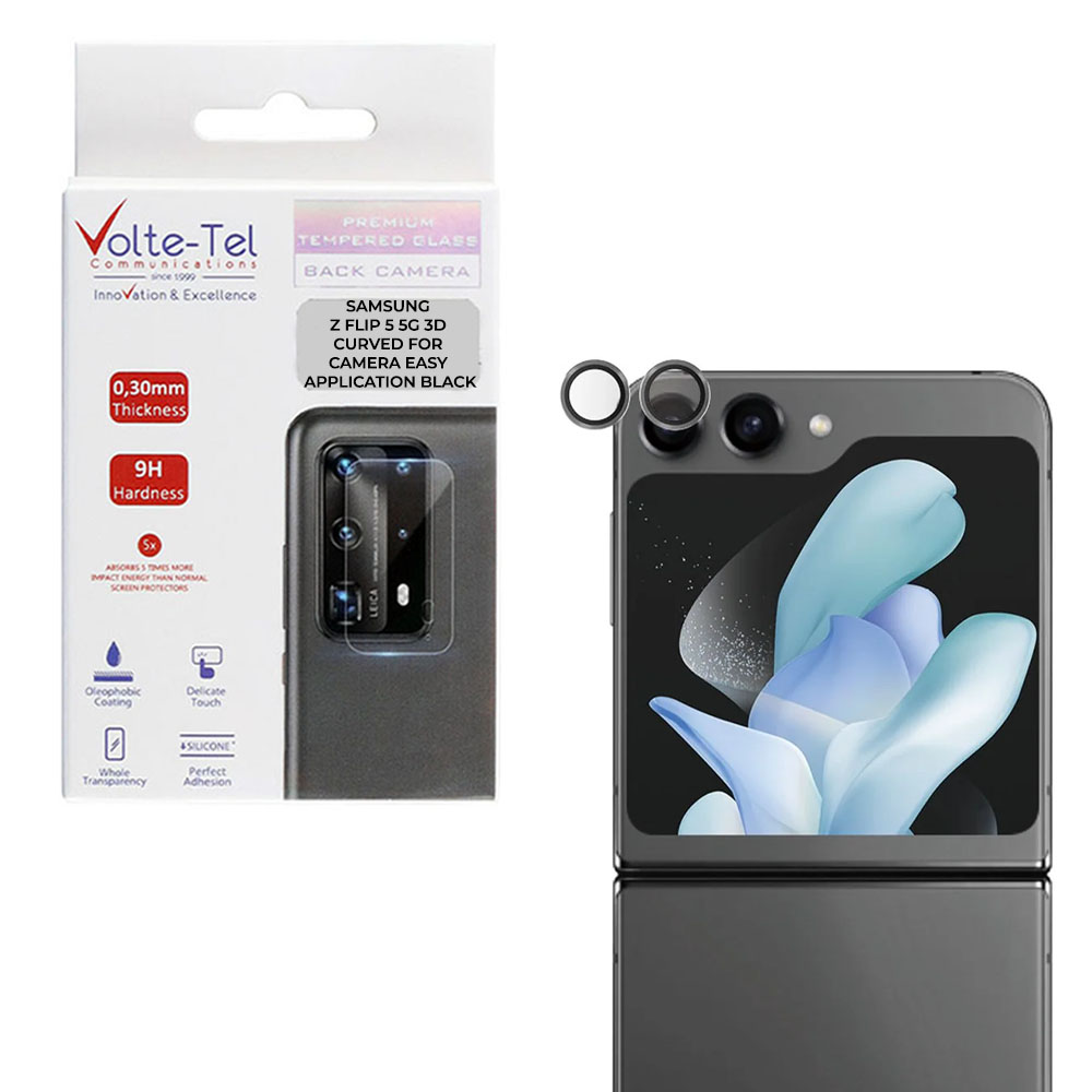 CAMERA GLASS COVER SAMSUNG Z FLIP 5 5G F731 6.7" 9H 0.30MM EASY APPLICATION BLACK