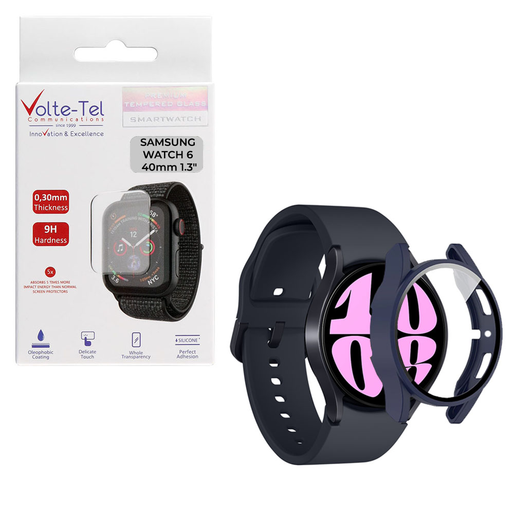 TEMPERED GLASS SAMSUNG WATCH 6 40mm 1.3" 9H 0.30mm PC EDGE COVER WITH KEY 3D FULL GLUE FULL COVER BLUE