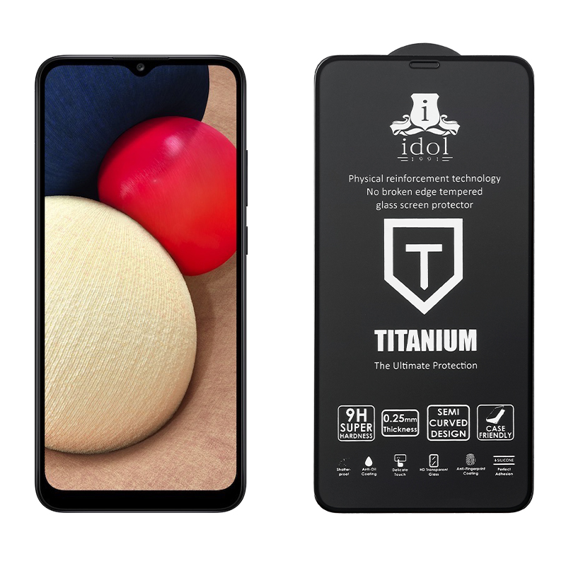 TEMPERED GLASS SAMSUNG A02s A025 6.5" 9H 0.25mm TITANIUM SEMI CURVED FULL GLUE BLACK