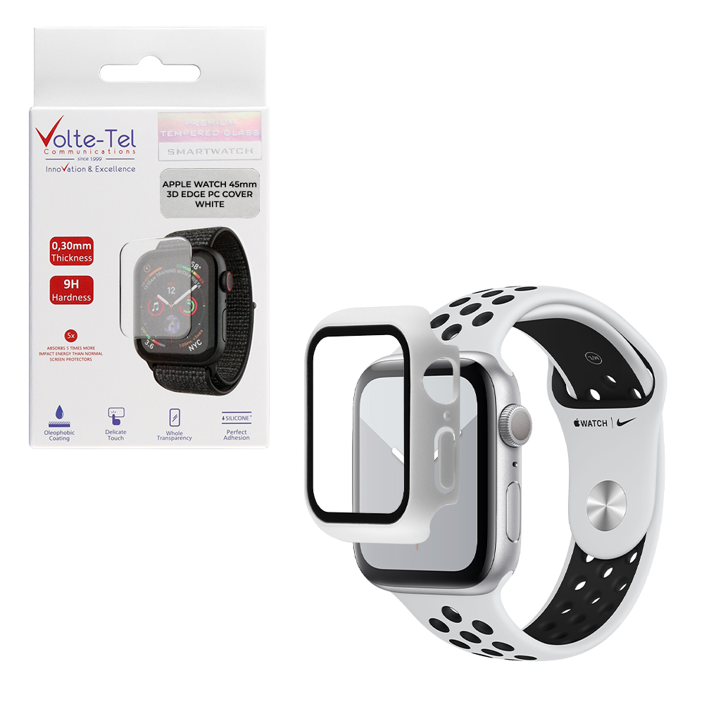 TEMPERED GLASS APPLE WATCH 45mm 1.78" 9H 0.30mm PC EDGE COVER WITH KEY 3D FULL GLUE FULL COVER WHITE