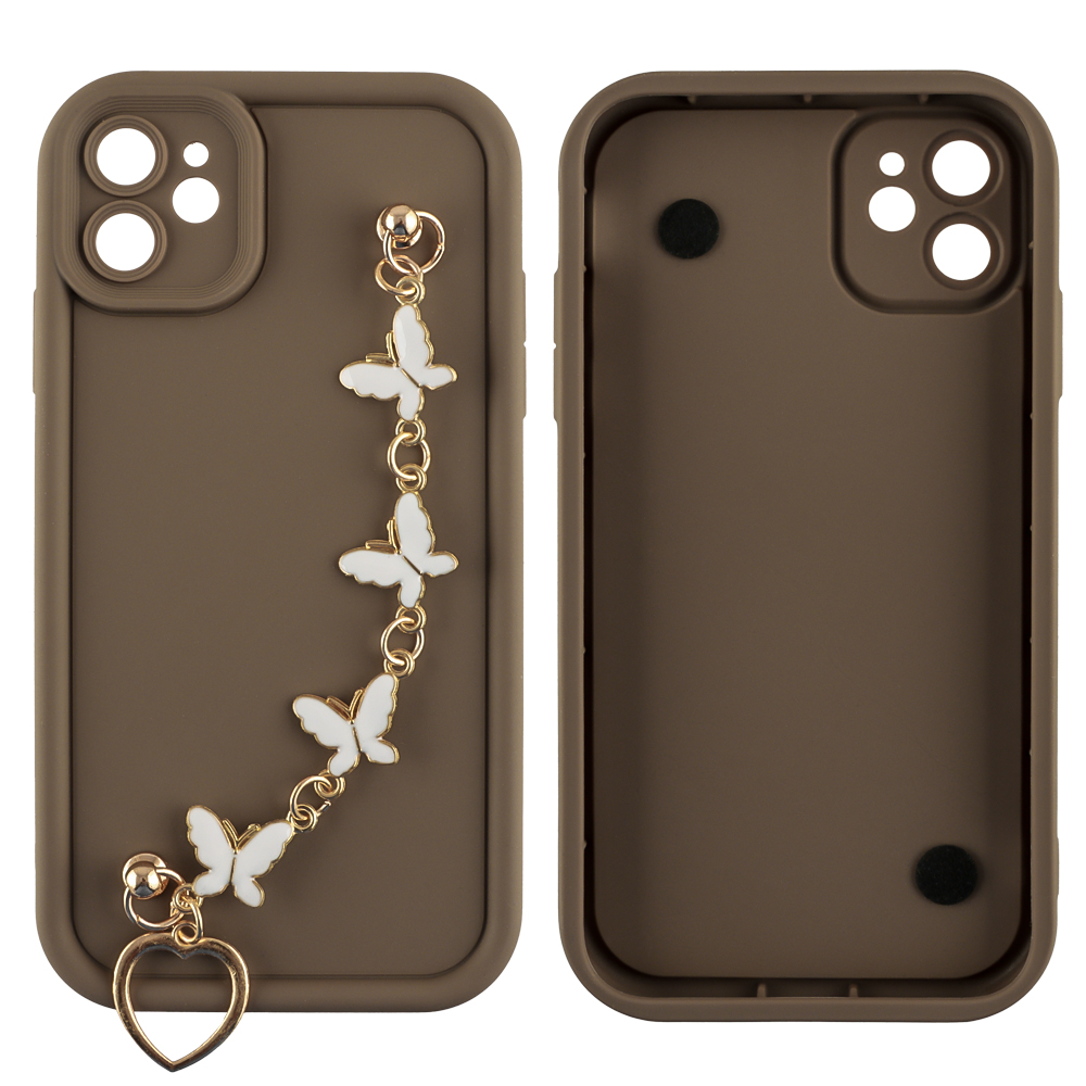 VOLTE-TEL ΘΗΚΗ IPHONE 11 6.1" SILICON TPU WITH STRAP FULL CAMERA PROTECTION BROWN WITH WHITE BUTTERFLIES