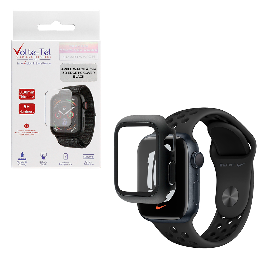 TEMPERED GLASS APPLE WATCH 41mm 1.69" 9H 0.30mm PC EDGE COVER WITH KEY 3D FULL GLUE FULL COVER BLACK