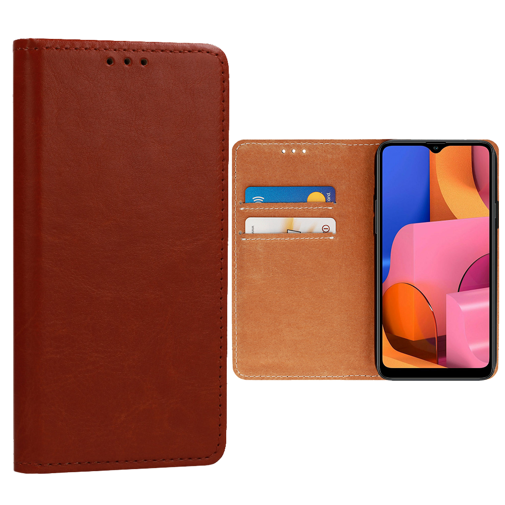 ΘΗΚΗ SAMSUNG A20s A207 6.5" ITALIAN LEATHER MAGNET BOOK STAND BROWN
