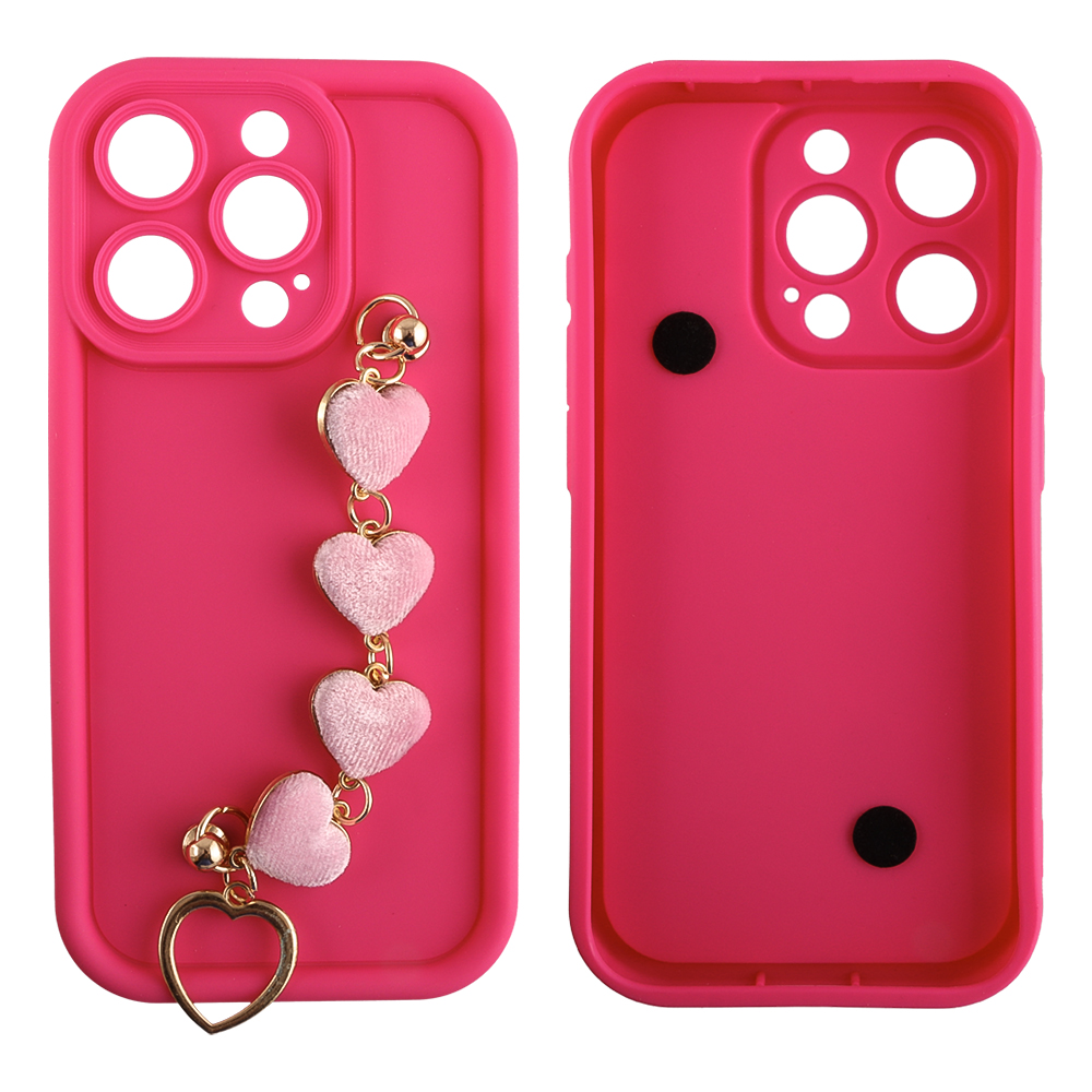 VOLTE-TEL ΘΗΚΗ IPHONE 15 PRO 6.1" SILICON TPU WITH STRAP FULL CAMERA PROTECTION PINK WITH PINK HEARTS