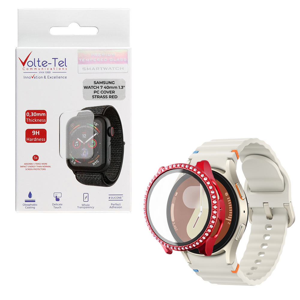 TEMPERED GLASS SAMSUNG WATCH 7 40mm 1.3" 9H 0.30mm PC EDGE COVER WITH STRASS 3D FULL GLUE FULL COVER RED